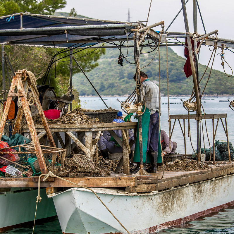Parting from the Croatian coast, the peninsula of Pelješac encloses the bay of Mali Ston. Right there, river Neretva and many underground freshwater sources flow into the Adriatic, diluting it into an environment perfect for growing mussels and oysters.